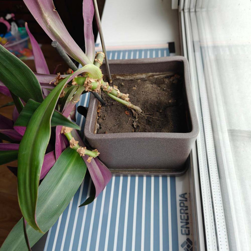 Инфракрасная пленка работает по принципу солнечного тепла - нагревает не воздух, а непосредственно поверхности и объекты. Это обеспечивает равномерный и мягкий прогрев, который особенно важен для цветов, рассады и комнатных растений в холодное время года. Структура инфракрасной пленки, Энерпия состоит из полос углеродной ткани, на ПЭТ основе, которые соединены между собой, при помощи медной и серебряной шины.
