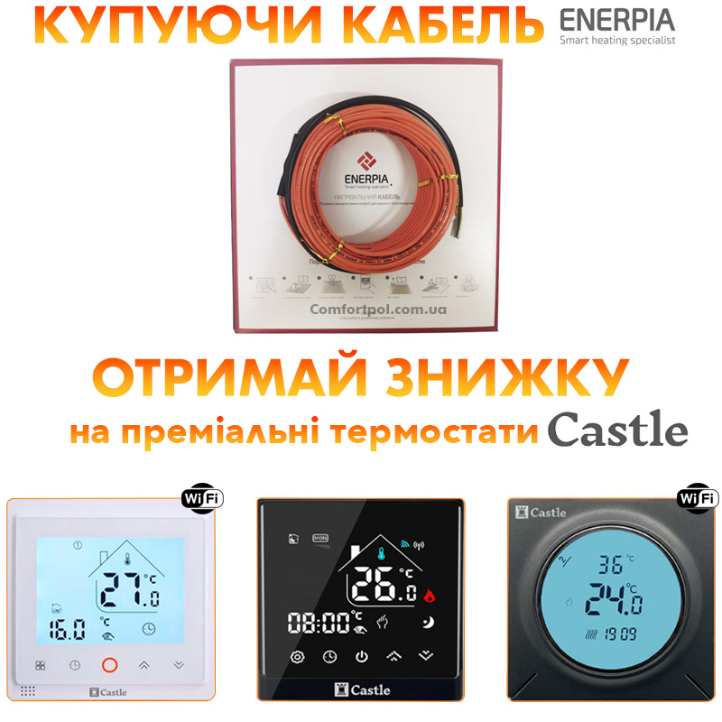- Высокая мощность теплого пола Enerpia - 20 Вт/м. При производстве используются, высококачественные премиальные материалы что, позволяет делать нагревательные кабели с высокой мощностью, с шагом укладки 10 см мы получим мощность 200 Вт/м2 - это мощность основного обогрева, подходит для холодных первых этажей и полноценного обогрева дома. При шаге укладки 12 см, мы получим мощность 160 Вт/м2 - это мощность для комфортного, дополнительного обогрева (может быть как основной обогрев в утепленных многоквартирных домах).