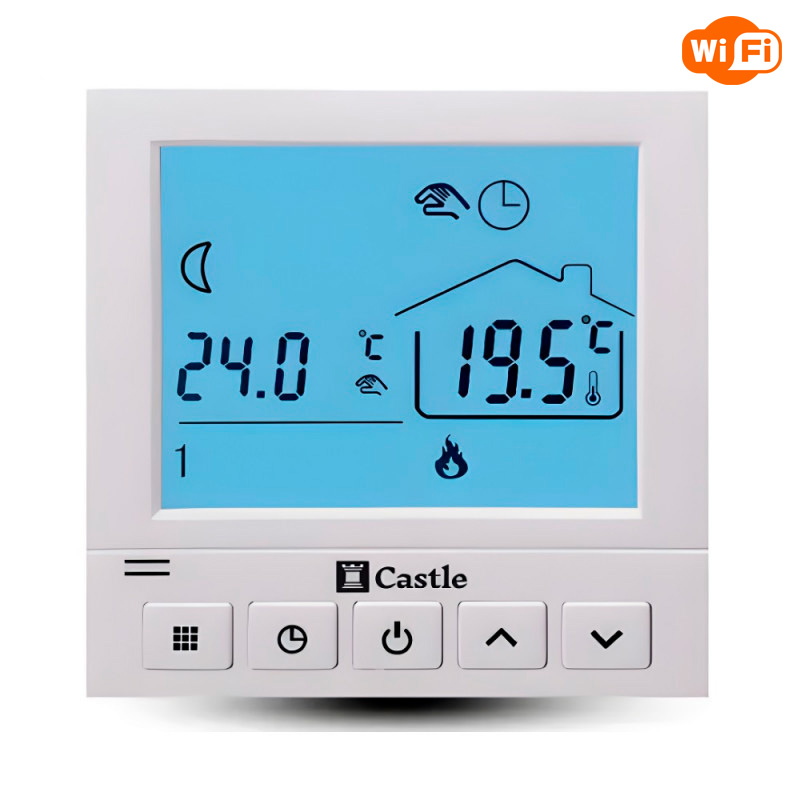 Терморегулятор электронный Castle АС819G WI-FI предназначен для автоматического регулирования температуры (поддержания заданной пользователем температуры) в помещениях, оборудованных отопительными котельными системами. Термостат имеет функцию удаленного управления с помощью сети WI-FI.