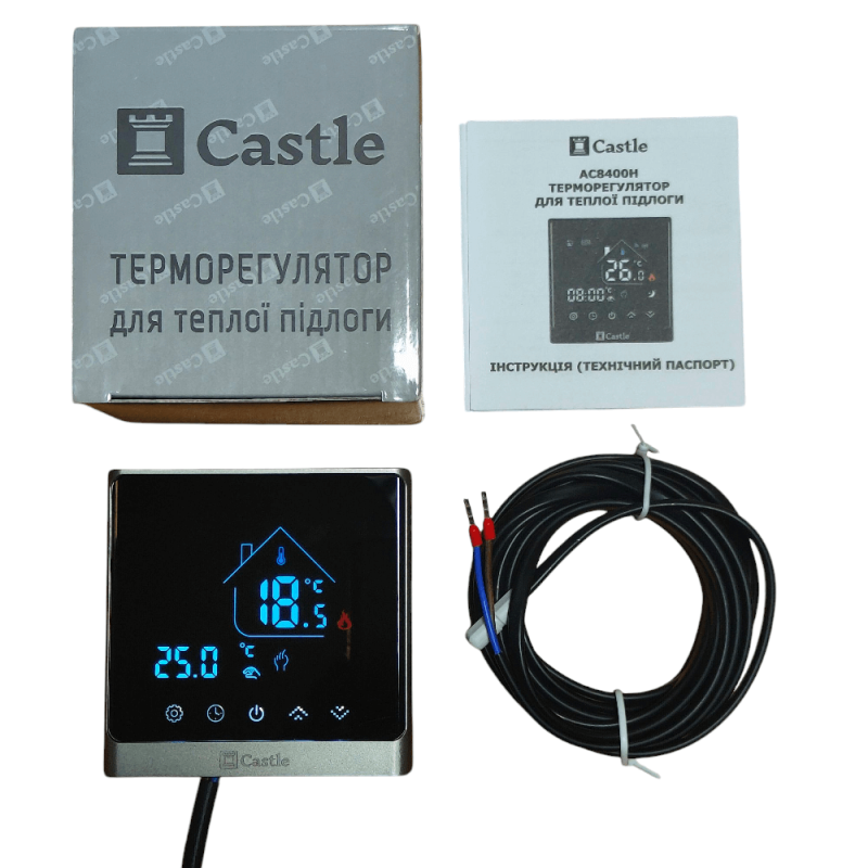 Терморегулятор электронный Castle АС8400G предназначен для автоматического регулирования температуры (поддержания заданной пользователем температуры) в помещениях, оборудованных отопительными котельными системами.