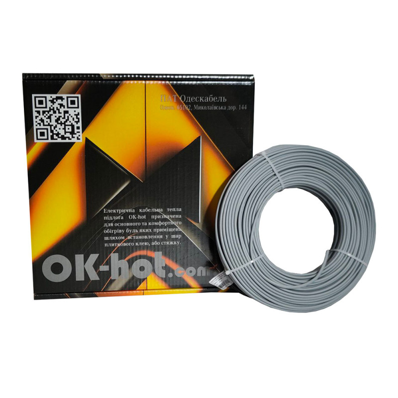 Тепла підлога Одескабель OK-hot це двожильний нагрівальний кабель від Українського виробника ПАТ "Одескабель". Кабель Одескабель OK-hot 17 чудово підходить для влаштування теплої підлоги, потужність двожильного кабелю OK-hot 17 Вт/м, кабель теплої підлоги OK-hot універсальний, його рекомендується встановлювати як в бетонну стяжку так і під шар плиткового клею або ламінат, нагрівальний кабель OK -hot фіксується на твердій поверхні з використанням оцинкованої монтажної стрічки.