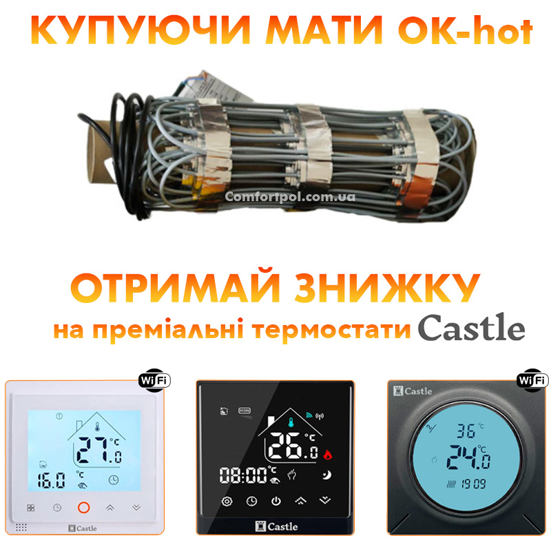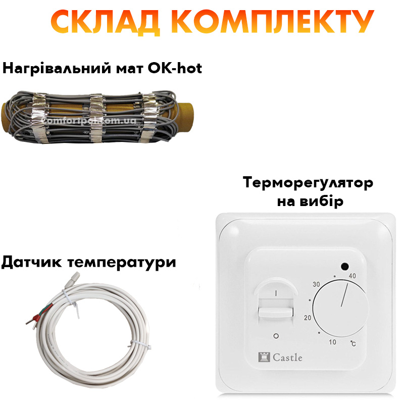 | Комплектація | Мат теплої підлогиб, інструкція, гарантійний сертифікат |