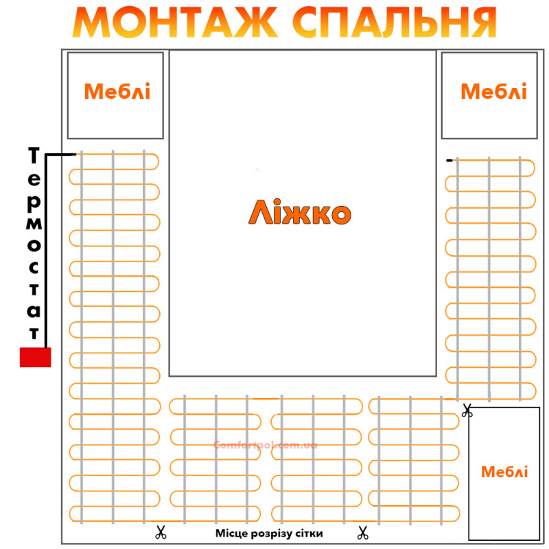 - Підключення теплої підлоги до живлення повинно здійснюватись через пристрій захисного відключення.