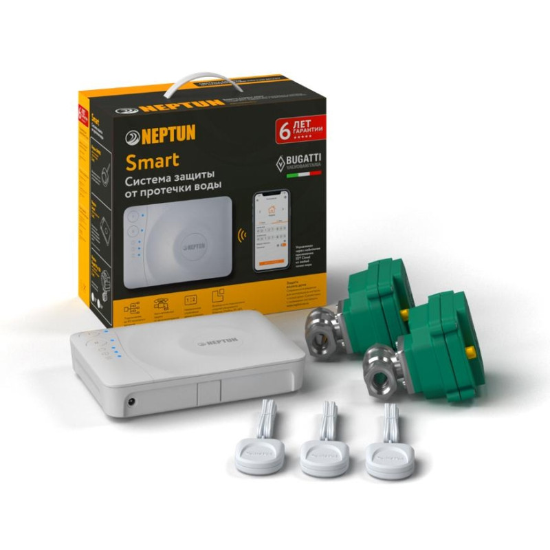 Neptun Bugatti Smart це провідна система контролю протікання води та затоплення приміщень, систему використовують для встановлення в житлові та нежитлові приміщення з метою контролю та попередження протікання у вашому приміщенні.