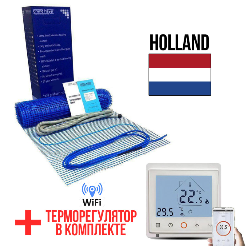 Двожильний мат Гранд Мейєр, серії THM180, розроблений та вироблений в Голландії, має потужність 180 Вт/м2, використовується для облаштування систем опалення "Тепла підлога". Гріючий мат Grand Meyer THM180, застосовують, як основне або додаткове опалення в житлових і не житлових приміщеннях.