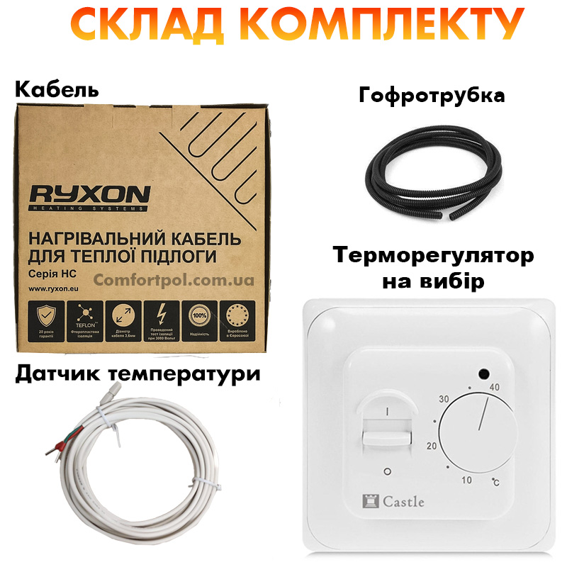 Ryxon HC-20 - тонкий двожильний нагрівальний кабель від латвійського виробника Ryxon (Ріксон). Використовується для облаштування теплих електричних кабельних підлог під плитку та інші типи покриття для підлоги.