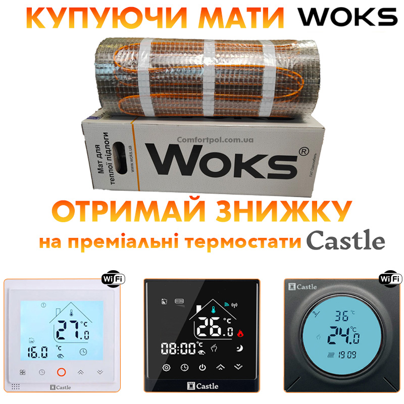 Для монтажу на стіні рекомендується використовувати звичайний нагрівальний мат Woks потужністю 160 Вт/м².