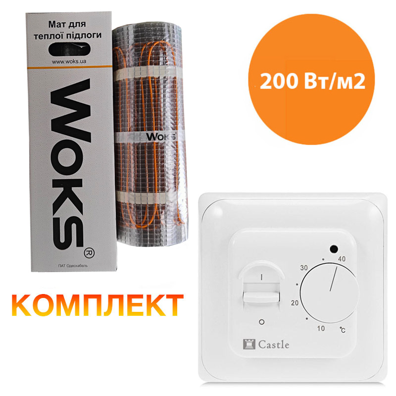 Теплий мат Woks складається з двожильного нагрівального кабелю, який надежно закріплений на сітці зі скловолокна з фіксованим кроком укладання. (200 Вт/м2) кабель має алюмінієвий екран, він підключається до заземлення, щоб запобігти наростанню напруги на зовнішній стороні теплого мату.