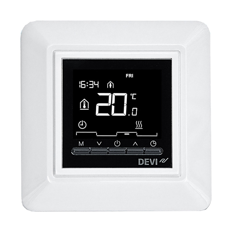 Кімнатний термостат, який використовується для встановлення на стіну. DEVIreg™ Opti - це електронний термостат із програмованим таймером, розроблений за стандартами Eco design. Термостат в основному використовується для управління електричними нагрівальними підлоговими елементами.