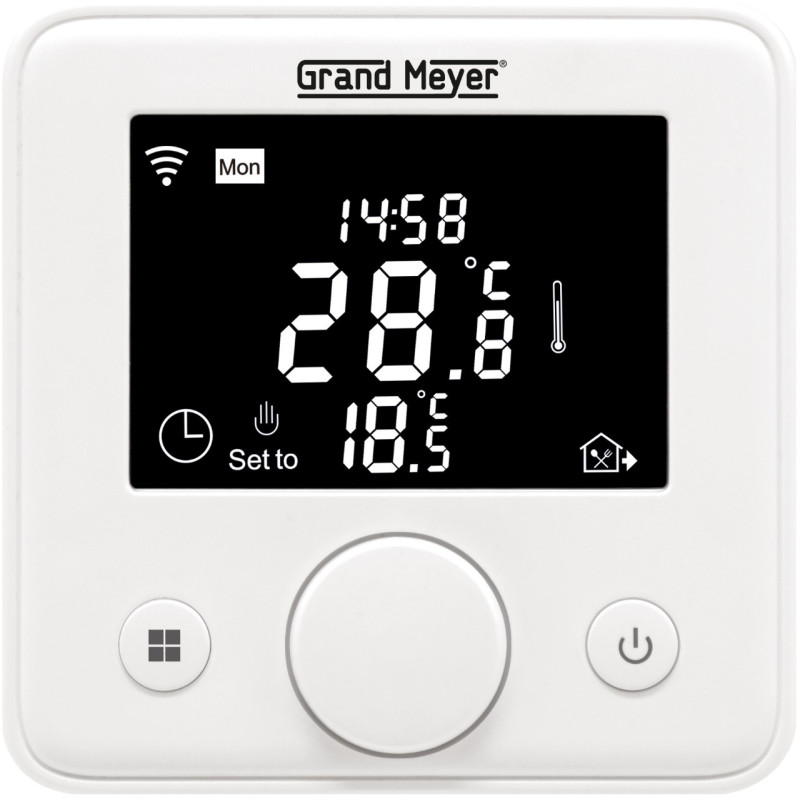 Терморегулятор програмований Grand Meyer W330 - це пристрій, який використовують для встановлення та управління системами, підлогового електроопалення "тепла підлога". Термостат Гранд Мейєр виготовлений у Голландії з якісного пластику, зарекомендував себе як: практичний, надійний, довговічний пристрій для керування системою опалення. Програмовані термостати Grand Meyer W330 мають можливість програмного та ручного керування, програмні налаштування зберігаються навіть за відсутності електроживлення. Термостат Гранд Мейер W330 оснащений вбудованим термодатчиком, так само є можливість підключення виносного датчика, на лицьовій частині терморегулятора, розташований екран. Є повне керування термостатом через мережі WiFi, зі смартфона або браузера персонального комп'ютера.